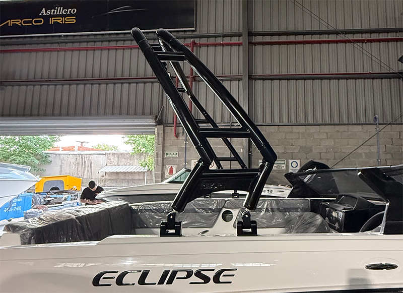 NOTE: When you have a narrow boat you probably need to shorten the overhead bar to make the tower fit to your boat.